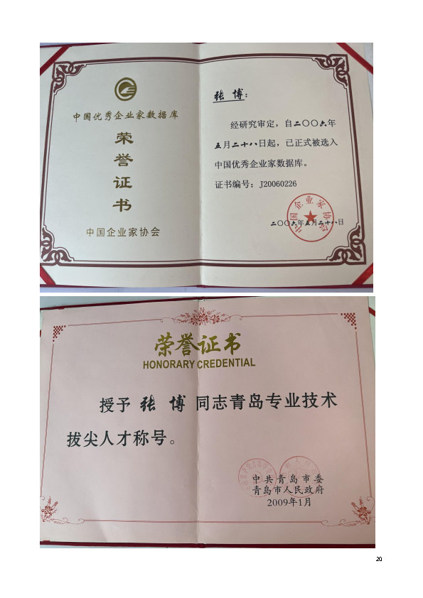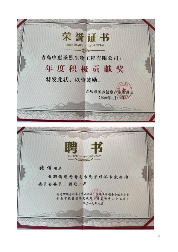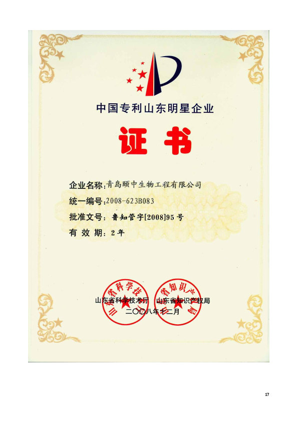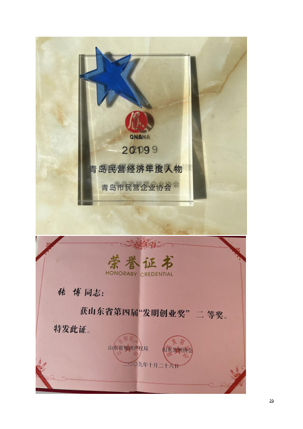 在張博董事長的帶領下,企業(yè)先后獲得國家科技部“中國民營科技企業(yè)重大貢獻獎;國家科技部“中國民營科技企業(yè)創(chuàng)新獎”;公司連續(xù)被山東省經(jīng)貿(mào)委授予“山東省醫(yī)藥行業(yè)突出貢獻企業(yè)”;公司連續(xù)被山東知識產(chǎn)權局、山東省科技廳評為“中國專利山東明星企業(yè)”;青島市經(jīng)信局“市級企業(yè)技術中心”;青島市民營企業(yè)協(xié)會“青島市行業(yè)領軍企業(yè)”;“青島市專精特新企業(yè)”;“國家高新技術企業(yè)”等榮譽稱號。同時公司產(chǎn)品先后獲得:產(chǎn)品經(jīng)科技部鑒定為“國際領先”,這是對科技水平的最高定位!